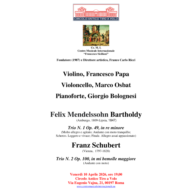 “Il 10 aprile ha avuto luogo il concerto del Trio Papa, Osbat e Bolognesi, in collaborazione con il Centro Musicale Internazionale “Francesco Siciliani” e patrocinato dalla C